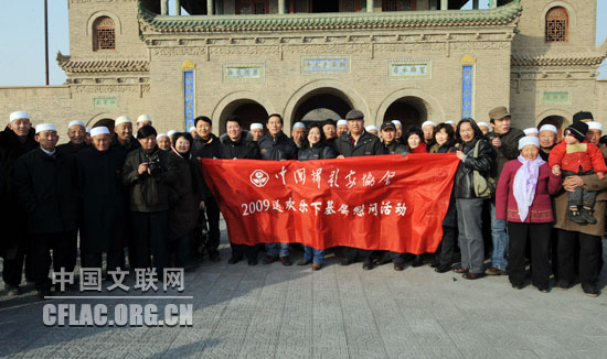 “三九”第一天,严冬的寒意没有退却艺术家们的脚步,慰问活动在闻名遐迩的有着400多年历史的纳家户清真寺举行。慰问团一行为广大村民送去了特别的“年货”——用《建设社会主义新农村摄影展览》作品制成的年历,为他们带来温暖的祝福。摄影家们为150多位回族老人和小孩拍摄了照片,留下难忘的瞬间。