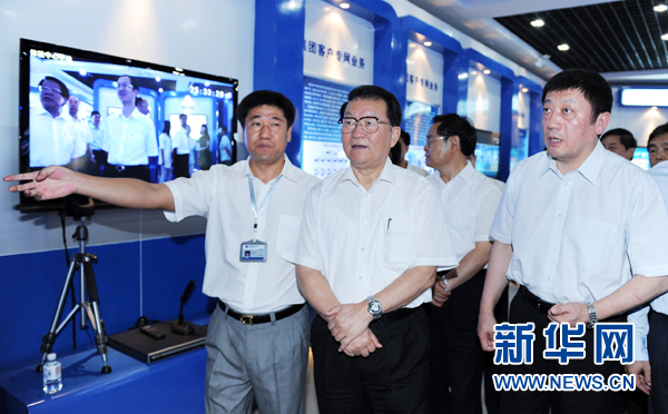 8月25日至29日,中共中央政治局常委李长春在吉林调研。这是8月28日,李长春在吉视传媒股份有限公司考察。新华社发(宋锴摄)