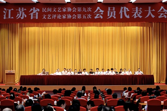 徐宁代表江苏省委宣传部向大会的召开表示祝贺。她指出,自上届代表大会召开以来,江苏省民协、江苏省评协团结引领全省广大文艺工作者围绕中心、服务大局,记录时代、服务人民,精品佳作持续涌现,人才队伍不断壮大,为建设社会主义文化强省谱写了新篇章。新时代新征程,党的领导是我们的“定盘星”,引领文艺发展新航向,要坚持“二为”方向、“双百”方针,坚持创造性转化、创新性发展,把艺术理想融入中国式现代化江苏新实践,创作出一批具有江苏特色、时代特征、中国气派的优秀文艺作品;人民需求是我们的“坐标系”,奏响文艺创作最强音,要积极适应新大众文艺发展的新趋势、新要求,把握好传统文艺与新型文艺、专业创作和大众创作的关系,始终坚持以人民为中心的创作导向,把人民作为文艺表现的主体,让古老的民间文艺和深刻的文艺评论以更鲜活的姿态走进大众视野;德艺双馨是我们的“风向标”,铸就艺术人生新高度,要把崇德尚艺作为贯穿一生的功课,努力成为社会风尚的引领者、时代新风的开创者。文联各协会要深入贯彻落实党的文艺方针政策,最大程度地组织动员各领域各层次各方面的文艺工作者投身党的文艺事业,为建设社会主义文化强省、谱写“强富美高”新江苏现代化建设新篇章作出新的更大贡献。