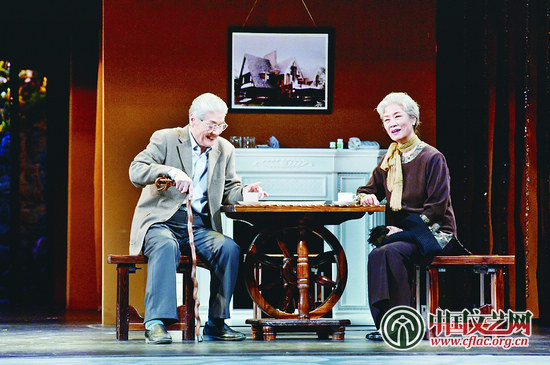 2012年9月至10月,话剧《甲子园》的首轮演出中,蓝天野饰演达观坦诚的黄仿吾,吕中饰演优雅的彦梅仪。 王雨晨 摄