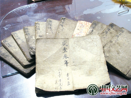 皮影艺人杨明忠收藏的皮影影卷中年代最久远的《兴隆传》(抄誊于咸丰三年) 张 朔/摄