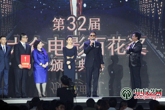 中国文联党组书记、副主席赵实,中国文联党组成员、书记处书记郭运德出席颁奖典礼现场并为中国电影金鸡奖终身成就奖获得者颁奖