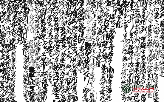 近日,由中央美术学院、中国美术学院、中国书协、杭州市文联、银座美术馆和《诗书画》杂志联合主办的“第三届《诗书画》年度展——道象·王冬龄书法艺术”在北京太庙艺术馆举行。此次展览中,王冬龄以“乱书”和“壁书”的形式来呈现儒释道名篇:主要展出的是他新近创作的大型镜面壁书《易经》,作品全长32米、高3.5米,由白色的油漆在不锈钢板面上书写而成;同时展出的还有王冬龄近年来创作的蝇头小草《道德经》和《庄子·内篇》等十余件草书作品。
