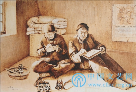 它是用黄澄澄的麦秆拼贴而成的乡间耕耘图像,也是用红艳艳的纸张剪成的城市繁景,是用颜色单一的泥土捏成的说唱艺人,也是用五颜六色的五谷作物制作而成的采茶少女……麦杆画、剪纸、泥塑、五谷画、皮影、烙画、玉雕、沙画,等等,民间文艺家手中的绝活难以尽数,如同他们眼中的小康图景,在生活的每一个细节中都闪着明亮的光芒。