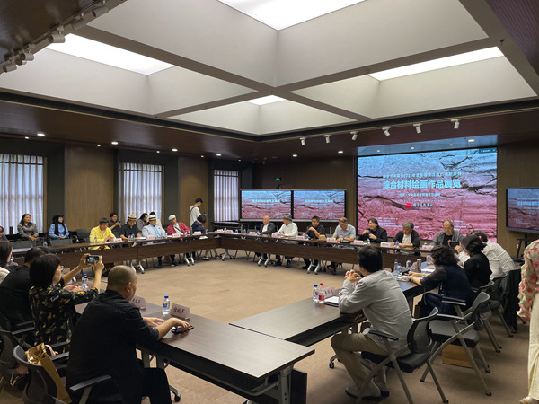 综合材料绘画作为中国美术发展历程中涌现出来的新生艺术,担当起当代架上艺术发展的时代重任。它的当代性,既包含对国际美术成果的借鉴,也形成与当下文化语境的对接。开幕式后举行了“综合材料绘画作品展览”学术研讨。胡伟对艺委会成立十余年来的历届展览的情况作了回顾和介绍。朱尽晖、杨劲松、宋克、岳海波等对于综合材料绘画当下的发展分别发表了观点。