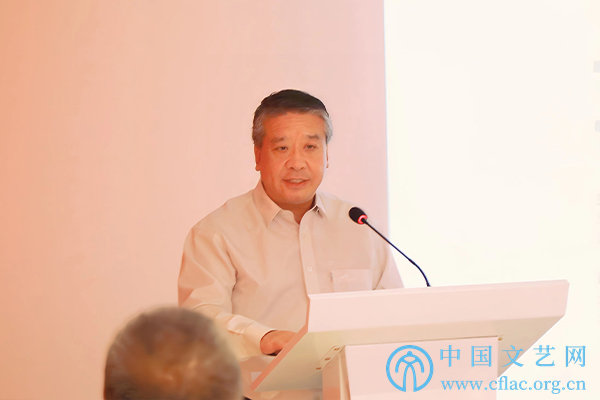 5月17日,“艺海拾珍”懋隆出口创汇精品艺术展在京正式启动。图为北京工艺美术行业协会副会长兼秘书长宋印伟讲话。