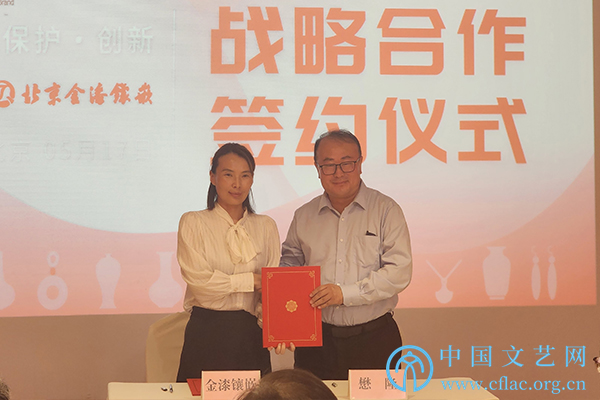 5月17日,“艺海拾珍”懋隆出口创汇精品艺术展在京正式启动。图为北京懋隆艺术馆与北京金漆镶嵌艺术博物馆签署战略合作协议。