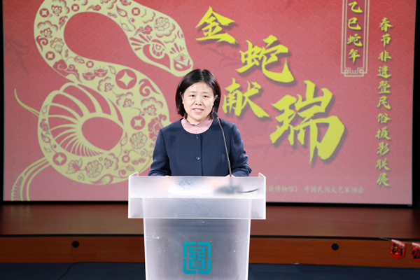 “金蛇献瑞——乙巳蛇年春节非遗暨民俗摄影联展”是由国家图书馆(国家典籍博物馆)和中国民间文艺家协会共同举办。春节的申遗成功为蛇年新春赋予了特别意义。展览中特别策划了“春节非遗”单元,充分展现春节寓意美好愿望的一系列文化活动;在“我们的节日·春节”单元中展出了2024年中国民间文艺家协会与国家图书馆联合举办的“我们的节日·春节”民俗摄影作品征集活动中的获奖作品,生动展示春节期间各地、各民族丰富多彩的民俗活动。展览还详细介绍了春节的雏形、“蛇”文字的演变等。