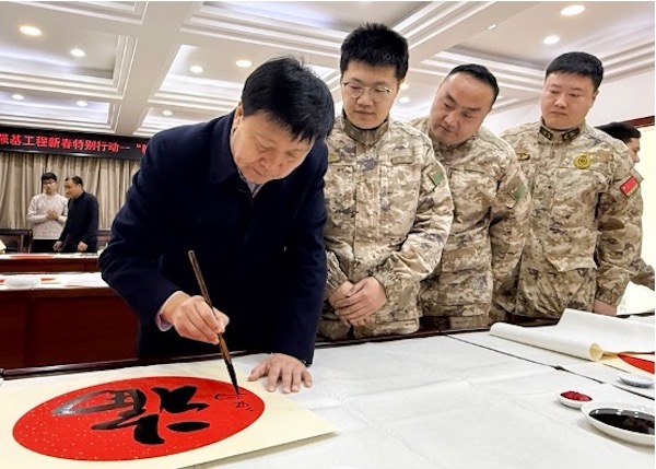 活动现场,书法家们挥毫泼墨,“爱我人民爱我军”“军民心连心,双拥谱新篇”……一副副年味、兵味十足的春联和一张张红火的“福”字一气呵成,跃然纸上,为官兵们送去了新年最美好的祝福。在一幅幅墨宝前,官兵们驻足欣赏,细细品味,尽情感受着字里行间浓浓的军民鱼水情。