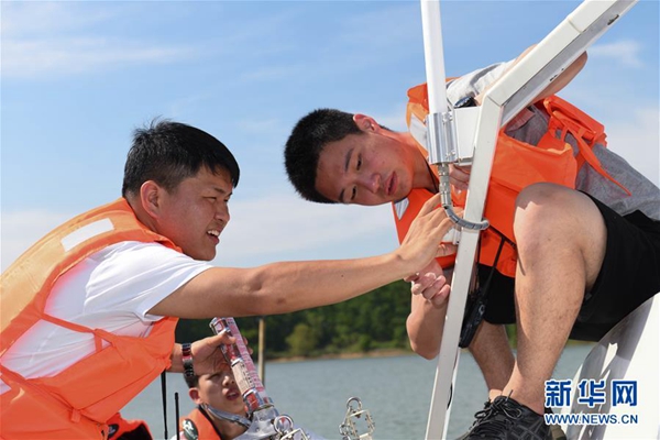 吴振昊(左)在“精湖壹号”水文水质监测无人船航行测试中与团队成员交流(4月18日摄)。今年25岁的吴振昊是合肥工业大学电子与通信工程专业的研二学生,目前在该校北斗导航信息处理创新团队参与“精湖壹号”水文水质监测无人船的研发工作。据介绍,“精湖壹号”水文水质监测无人船主要应用于河流和湖泊中各类污染物的自动化监测和水文测量。在研发和调试中,吴振昊遇到许多困难,但是通过不懈的努力,他所在的团队完成了无人船的研制以及各项功能的调试。未来,吴振昊与团队其他成员将进一步优化无人船,继续为生态环境保护奉献青春和汗水。 青年是整个社会力量中最积极、最有生气的力量,国家的希望在青年,民族的未来在青年。奋斗是青春最亮丽的底色。让青春在新时代改革开放的广阔天地中绽放,让人生在实现中国梦的奋进追逐中展现出勇敢奔跑的英姿。 新华社记者 张端 摄