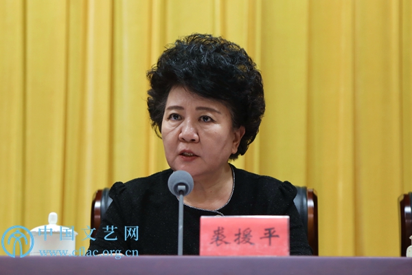 6月6日,中国文联“不忘初心、牢记使命”主题教育动员部署大会在京召开。图为中央第十九指导组组长,第十三届全国政协常委、港澳台侨委员会副主任国务院侨办原主任、党组书记裘援平出席会议并讲话。中国文艺网 张钰童 摄