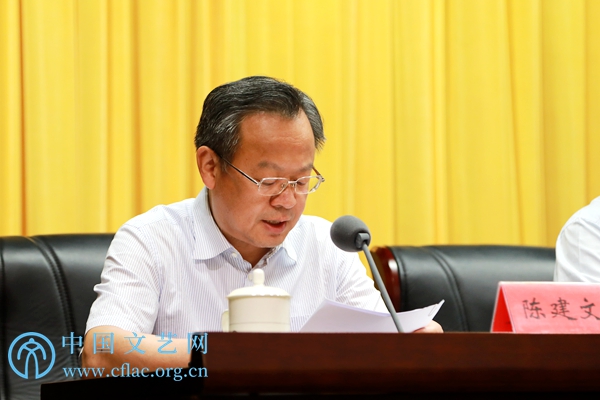 6月6日,中国文联“不忘初心、牢记使命”主题教育动员部署大会在京召开。图为中国文联党组成员、副主席陈建文传达“不忘初心、牢记使命”主题教育工作会议精神。中国文艺网 张钰童 摄