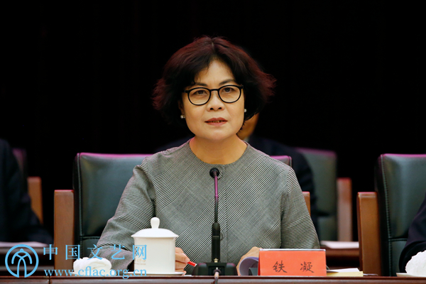 1月7日,中国文联十届五次全委会在京召开。图为中国文联主席、中国作协主席铁凝主持会议。中国文艺网 高晴摄