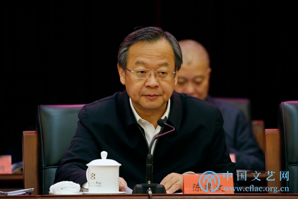 1月7日,中国文联十届五次全委会在京召开。图为中国文联党组成员、副主席陈建文通报《中国文联第十届主席团第七次会议关于同意中国检察官文联不再作为中国文联团体会员的决议》。中国文艺网 高晴摄