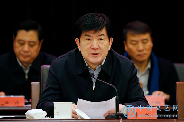 1月7日,中国文联十届五次全委会在京召开。图为中国文联党组书记、副主席李屹作工作报告。中国文艺网 高晴摄