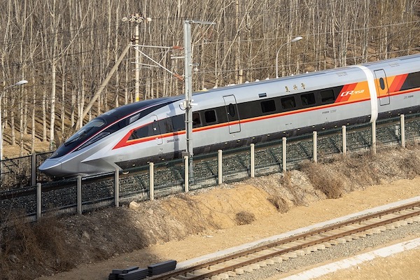 △2025年2月15日,中国铁道科学院试验中心环形试验场,复兴号CR450型电力动车组进场展开测试。