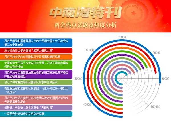 奋进的春天新潮奔涌,冲刺全新高度的力量澎湃涌动。央视网“智闻”系统提取全国两会期间新闻热榜,为我们观察中国发展脉动提供了全景视窗。