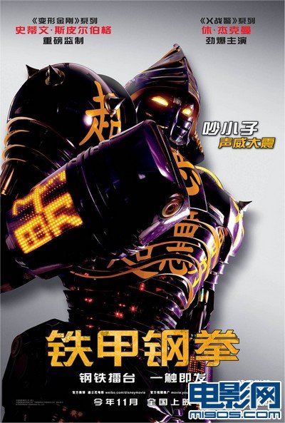 近日,即将上映的大片《铁甲钢拳》曝光一系列中文海报。几个拳击机器人的大名赫然在列,除了紫色的主人公“吵小子”外,另外三个分别为“金拳头”、“奇袭”和“亚当”。《铁甲钢拳》充斥着大量机器人搏击拼杀的镜头,更被网友戏称为“拳击版的《变形金刚》”。