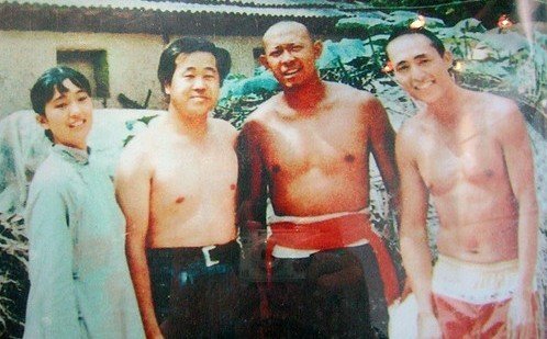 电影《红高粱》工作照 左起:巩俐、莫言、姜文、张艺谋