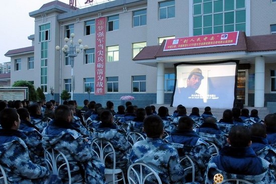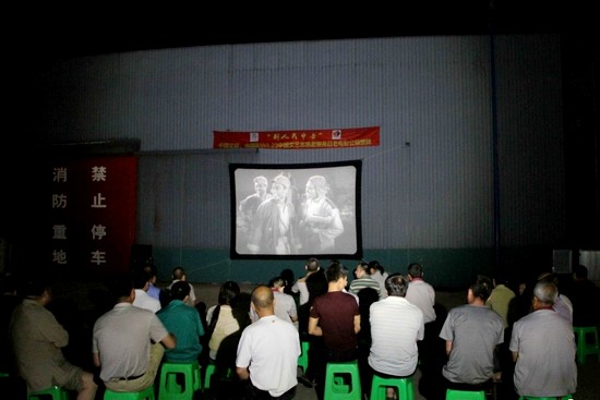 在红色爱国主义教育基地——129师司令部旧址广场放映爱国主义教育影片《国歌》