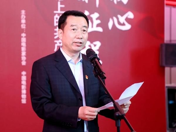 6月1日,“光影映初心 奋斗新征程——银幕上的共产党员形象”展览开幕式在中国电影博物馆举办。图为中国影协分党组书记、驻会副主席张宏致辞。