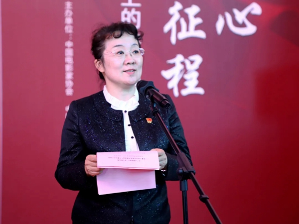 6月1日,“光影映初心 奋斗新征程——银幕上的共产党员形象”展览开幕式在中国电影博物馆举办。图为中国电影博物馆党组书记、馆长陈玲致辞。