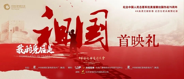 10月25日,由中央新闻纪录电影制片厂(集团)、中央广播电视总台军事节目中心联合主办,北京发现纪实传媒承办的纪录电影《我的身后是祖国》首映礼在广东珠海举行。影片以抗美援朝战争进程为时间线,围绕“我的身后是祖国”这一主题,采用“凝练字幕+口述”的视听表现形式,从不同的维度抓取、剖析和共情中华英雄儿女在抗美援朝战争中的动人瞬间。