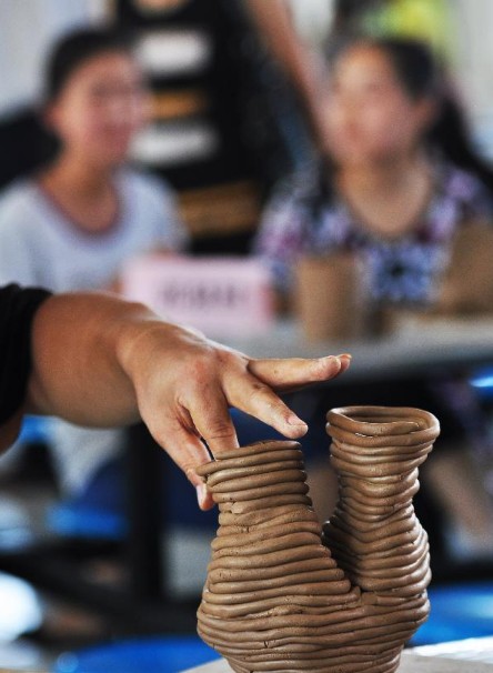 当日,山东省滨州市邹平县临池镇举行“我型我塑梦想飞舞”农民陶艺大赛,57支参赛队的农民代表以农村生产生活为素材,按“基础盘泥”和“创意制作”两项内容进行比赛,巧手创意展示新农村新风貌。