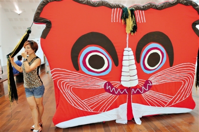 展览作品都是冯真走访各地搜集来的民间艺术品。 新京报记者 秦斌 摄