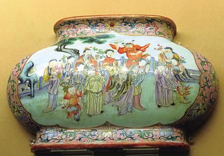 图为清乾隆粉彩开光人物图壁瓶。(周建平 摄)