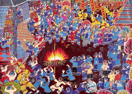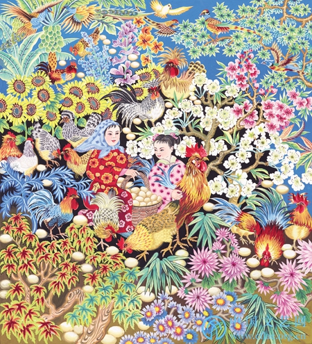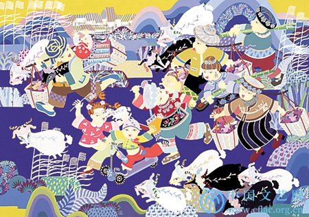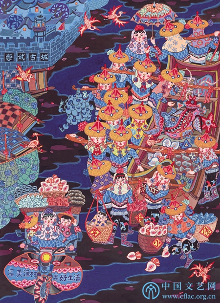 周京新说,中国农民画是一种特殊的艺术表现形式,其历史可追溯到2000多年前。当下,中国农民画已成为独立的、不可替代的、可以研究的画种,其具有独立的审美风格、技术体系和传承发展脉络,具有广阔的发展空间。纵观展览,入展作品充分体现出农民画创作者内心深处洋溢出来的色彩感越来越强烈,越来越纯净、透彻,展现了他们内心深处的豪迈。他希望农民画创作者们在保持自身创作特色的同时,能够多向其他画种和民间艺术门类进行借鉴,并有机融入自己的创作中。