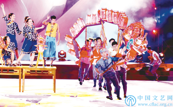 (三)民间艺术表演成果。民间艺术表演类有13部作品入围终评阶段,其中,民间歌曲有5部、民间舞蹈8部。《牧羊马》是哈萨克民歌,加入了民族乐器和多声部人声,经过重新创编,以自弹自唱的形式,表现人民在长期的生产劳动中,将羊马视为最忠实的朋友,同时也歌颂人民对美好生活的向往、对爱情的渴求。河曲《打蓝靛》流行于山西河曲,是打蓝劳动时所唱。所谓打蓝就是用木槌将石灰与蓝靓调匀,并击打瓮里的蓝液时所唱的歌。音乐、歌曲和劳动的动作相融合。歌曲地域特色浓郁,高昂欢快。《藏族对歌》是由马头琴伴奏的歌曲;《黄河船夫曲》是劳动号子,语言质朴粗犷,音调高亢;《水打禾头花花开》是客家山歌,曲调优美,悠扬绵长;《盛世雄风》(英歌舞)是普宁泥沟英歌,有悠久历史,表演舞动时,粗犷豪放,气势磅礴,犹如万马奔腾、猛虎下山,充分表现出人民大众不畏强豪、敢于抗争的精神;《最炫中国东北风》以海城高跷秧歌为基础,具有悠久的历史,歌、舞、杂技和小戏相融合,表现出东北人民乐观向上、豪迈不拘的生活态度;《苗族锦鸡舞》流传于苗族“嘎闹”支系中穿麻鸟型超短裙服饰的苗族村寨,表现苗族人民的温和娴静性格,体现人与自然和谐友好相处的状态;《安塞腰鼓》是民间广场歌舞的经典形式,糅合了秧歌和武术动作,气势磅礴,豪迈粗犷,刚劲奔放,表现出陕北人民憨厚朴实、悍勇威武、开朗乐观的性格。《凉州攻鼓子》以“攻”为主要动态姿势,表演阵法有两足对垒、展示三军、四门对敌、登高望远、套莲花、挂阵等,给人以威武雄壮、神秘莫测、粗犷豪放的美感,充分体现了古代武士的英勇剽悍、勇往直前的阳刚之美。《铜梁焰火龙》是铜梁地方在春节、端午、中秋、庙会时舞龙庆祝丰收、辟邪除恶、消灾免难、祈求风调雨顺、人寿年丰的活动,其中有祭龙、请龙的民俗活动,在吸收了川剧、二龙、火龙、杂耍等元素后,更加丰富多彩。 《奉化布龙》是奉化地区的传统民俗舞蹈,有敬神、请神、娱神等仪式,舞蹈套路有40多个,由盘、滚、游、翻、跳、戏等基本套路,舞者动作矫健,舞姿变化多端,气势雄伟。《头番红龙》的“头番红”是当地老百姓对中央苏区历史的俗称,作品以传统姓氏灯、板凳龙、板桥灯为道具,用传统手法简单编排,仪式感很强。