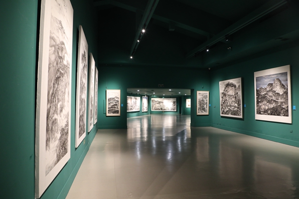 此次展览以“太行气象”为主题,分为四个篇章,展出祁海峰水墨作品95幅111件,涵盖了其近十几年来的中国画代表性创作。“苍韵太行”以遒劲笔墨刻画出太行的嶙峋岩壁与壮阔峰峦,彰显其苍凉雄浑的铮铮铁骨;“赤焰太行”通过革命题材的深情笔触,将硝烟岁月与英雄精神凝于画布,讴歌不朽的赤魂信仰;“雪域梵音”则转向雪域高原的圣洁空灵,以细腻线条与氤氲墨韵捕捉雪峰的禅意与神性;“万象随笔”则汇集了祁海峰在各地的写生作品,从市井烟火到湖山胜景,展现了艺术家对生命百态的敏锐洞察。这些作品,外师造化、中得心源,既是艺术家对太行山水等自然万象多维度、多角度的特质体认,更是他对祖国大好河山无限眷恋热爱的情感投射。