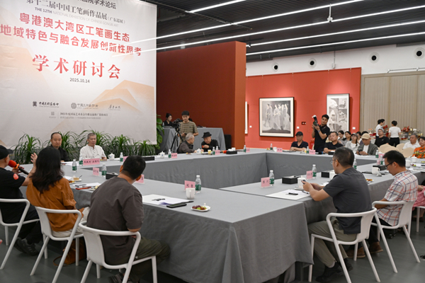 据悉,中国工笔画学会主办的“粤港澳大湾区工笔画生态——地域特色与融合发展创新性思考”学术研讨会在广东画院同期举办。陈孟昕、李乃蔚、陈湘波、郑阿湃、方政和、郭子良、刘吉、林涛、许敦平、许晓彬、罗寒蕾、罗玉鑫、于理、陈川、冯剑平等来自全国的专家学者围绕主题展开研讨,为当代工笔画的发展建言献策。