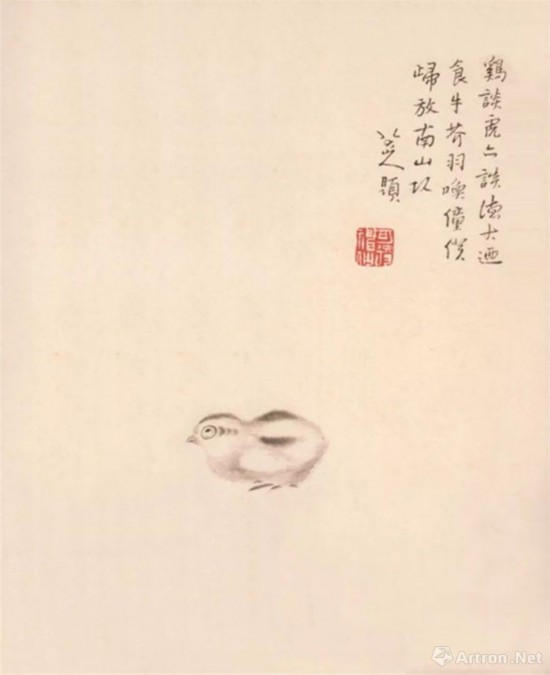 在这里,我举个例子,八大山人一个花鸟册页其中有幅《小鸡图》,构图非常呆板,整个画面只有一只小鸡在画正中间。他故意这样处理,因为他画这个小鸡图,画的是他感受到的这个世间的冷漠,那种心理,他认为只能用这种方法进行表现。就是假若你是一只小鸡,你来到这个世界上,站在中间一看,哪里都不着边际,这种无助、孤零零的心态,他用这种特定的构图来表达,就非常贴切和吻合。而这样做,就是因为大师的不拘一格和狂傲性格。现在,老师教学生时一讲构图,都是要求主体不能放正中间,那怎么可能产生这种效果,还有这种心理呢?