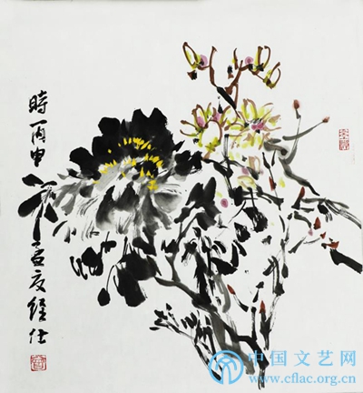 曾经仕先生近年来的山水和花鸟画,多以写意为主,师法海派吴俊卿、蒲作英、虚谷,又从八大山人处探得气格之法。其作品狂放恣肆,大气磅薄,酣畅淋漓,既有骨力又有墨韵风神;力求突破传统的造型观、构图式、笔墨律与用色法,探索直指内心的视觉语言;重造化的启迪,重心源的感悟,追求一种“法为我用”“随心所欲”的境界。