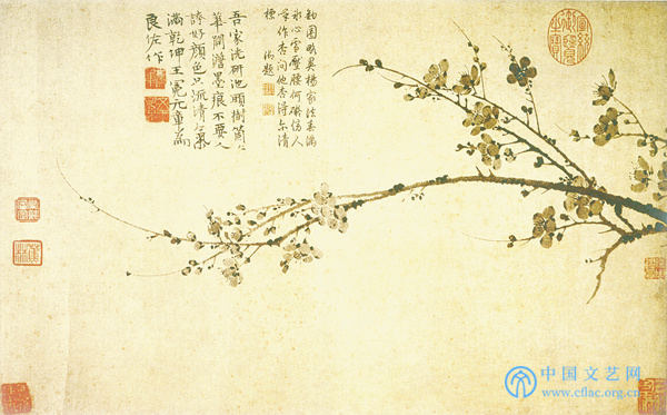 隆冬时节,百花凋零,梅花却迎着风雪昂首绽放。自古以来,人们爱梅、崇梅、画梅、颂梅,寄托心中的情怀。元代诗人杨维帧赞道:“万花敢向雪中出,一树独先天下春。”南宋大诗人陆游称百花中梅花品格第一:“雪虐风饕愈凛然,花中气节最高坚。”历代咏梅、画梅名家层出不穷,其中王冕既是画梅大家,尤擅墨梅,又是著名诗人,诗情画意在他笔下得到完美结合,对后世产生了深远的影响。