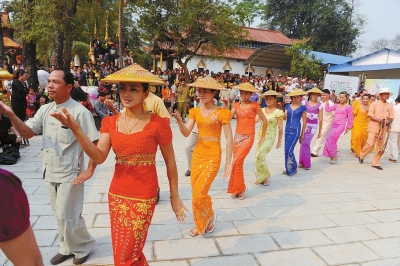 傣族传统舞蹈《嘎秧》表演现场。肖依群 摄