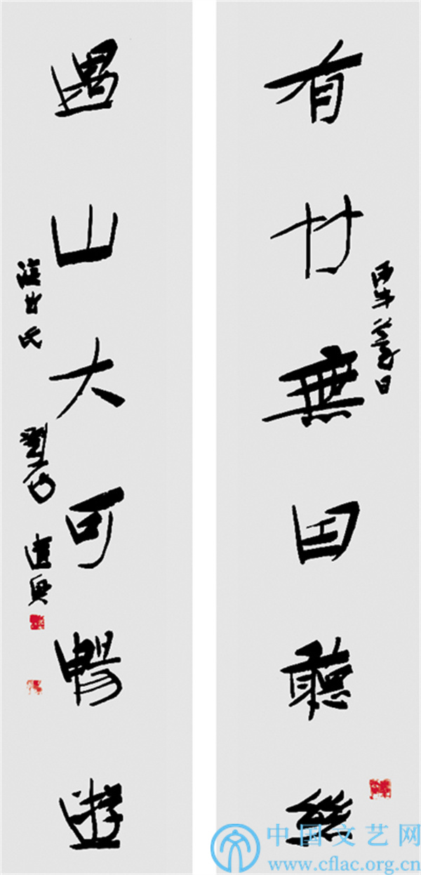 如果只有结体的端庄、舒展,则显得单调、刻板、拘谨。当人们的审美趋向多元化、多样化,单一的体式并不能满足人们的审美需求。于是,刘一闻大胆借鉴篆、行、草各类体式的写法,化为己有,为我所用,实现了庄谐结合,收放有度,疏密相济,机敏灵活,变幻多端,意趣丰富,展现了和谐、恣意之美。