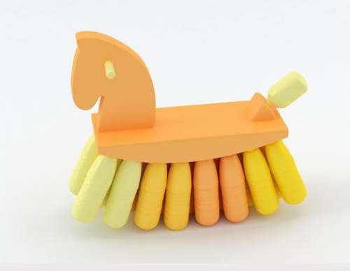 “摇摇木马”通过回收胶瓶并上色成为木马的一部分,重新赋予了它们生命。木马主体部分用实木造成,底部配有23个孔,可以通用市面上大部分的饮用水瓶。结构结实,可供2岁-10岁的小孩子使用(注:亲眼见过一百多斤的人坐过上去也没有问题)。这个设计还鼓励家长和小朋友参与制作,既能参与环保亦会加深亲子互动。