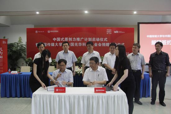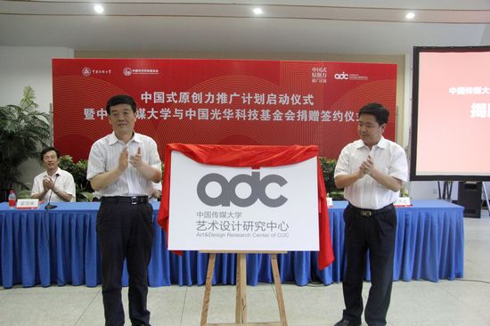 5月23日下午,中国式原创力推广计划启动仪式暨中国传媒大学与中国光华科技基金会捐赠签约仪式在中国传媒大学国际交流中心隆重举行。中国传媒大学李培元书记,中国光华科技基金会任晋阳理事长兼秘书长,文化部艺术司诸迪副司长,中国传媒大学廖祥忠副校长,中国光华科技基金会梁范栋副秘书长,清华美术学院余秉楠教授,以及多位华人设计师及专家学者出席了仪式。