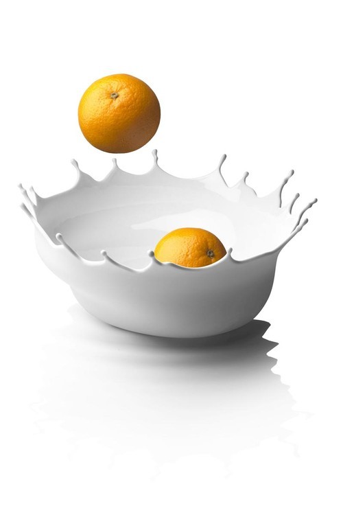 这款果盘很有趣哦,这设计就像是将水果扔入牛奶或者各色果汁中的感觉!
