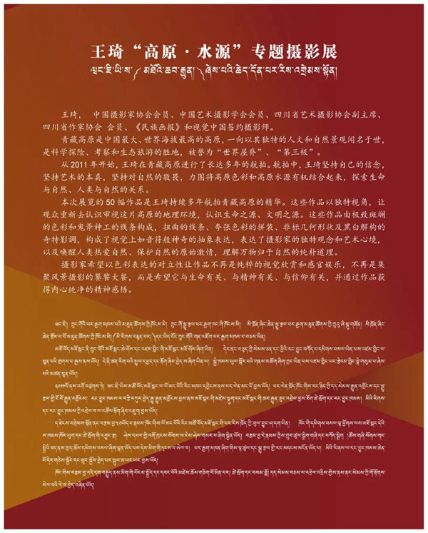 三十功名尘与土,八千里路云和月。十四年来,在国内外摄影家和摄影爱好者们的关心呵护和一路陪伴下,西藏珠穆朗玛摄影大展日益成为西藏文化艺术的一道亮丽风景,日益成为全国摄影界的一个知名品牌。为庆祝党的二十大胜利召开,宣传展示着力创建国家固边兴边富民行动示范区的巨大成就,“喜庆二十大·礼赞新时代——创建国家固边兴边富民行动示范区第十五届西藏珠穆朗玛摄影大展”在这里展出。展览展出的250件作品反映了在以习近平同志为核心的党中央的坚强领导下,社会主义新西藏呈现出的边境建设今非昔比、边境产业蓬勃发展、边民福祉节节攀升、边境防线坚若磐石、五星红旗高高飘扬的美好画卷。为增强展览的丰富性,展览特设“高原·水源”专题摄影展,展出了四川省成都市摄影家王琦的航拍青藏高原的50件作品,表达摄影家的独特观念和艺术心境,以及唤醒人类热爱自然、保护自然的原始激情,理解万物归于自然的纯朴道理。