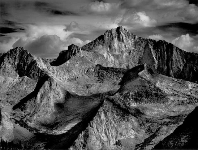 激情也表现为对持续工作的渴求,即使你已经很疲惫。激情和兴奋,往往会战胜疲倦,让你持续高效地工作,仿佛疲倦已经消失。在背包旅行途中,当别人已经安置下来,我却往往要不停地拍摄很长时间,这仅仅因 为周边的环境为我带来了极大的兴奋。1976 年,在山岳协会(Sierra Club)的一次旅行活动中,经过长时间的艰难跋涉之后,我们终于到达了营地。每个人都已经筋疲力尽,然而当大伙在做饭的时候,我却趁着夜色爬到了附近的山峰上观看克拉伦斯·金峰(海拔约3947米)。它就像一曲花岗岩谱奏的赋格曲。我向下面的团员们呼喊,让他们来看看这座神奇的山峰,然而,尽管不用背着行李和摄影器材,他们却都不乐意上来。我是唯一见到那一景色的人!