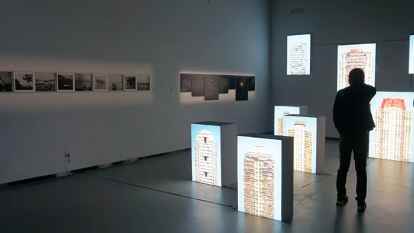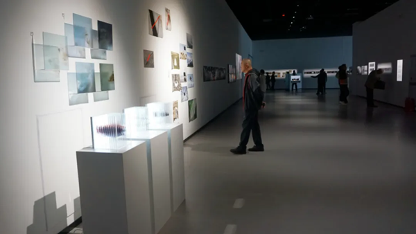 展览从空间设计到展陈方式打造了一场沉浸式的影像展,突出了青年对影像、媒介和自我的探索。《女生宿舍》做成灯箱装置,一个个小小的灯箱如同窗户,吸引观众靠近观察;《一块河水》另辟蹊径,将采集的水样封存起来,在媒介呈现上做出了创新探索;《塔楼》以艺术灯光装置呈现“这个时代最直接的面孔”,当观众伫立在灯箱前,面对最熟悉的生活空间,能够更深刻地感受到与生活的连接。