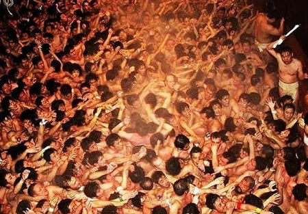 裸体节又叫“会阳节”,参加者都是男性,他们只系日本传统的兜裆布,几近全裸。这一活动开始于江户时代末期。