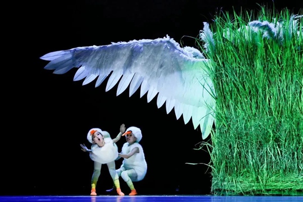 展演作品《这是我家》的动作捕捉极具意味,用拟人手法描述了“天鹅”的一家温馨而充满爱的画面,从单一化幼鹅动作的模仿,上升到儿童可爱的身体表达,进而产生新的化学反应,让人看到生活之美与孩童的纯真。“小天鹅”调皮欢乐的在外“探险”,遇到风雨和侵略时,第一时间“逃”回父母怀抱。此心安处是吾乡,家永远是“小天鹅”心中最有爱意和暖意的地方。由小朋友们演绎天鹅一家,内容创编符合少年儿童的日常观察经历,舞蹈动作设计遵从少年儿童的身体表达,更在扮演天鹅一家温暖相爱的同时,使小朋友们理解家庭温暖,从而达到寓教育舞的目的。