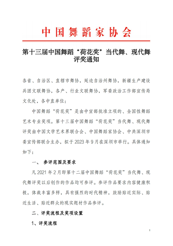第十三届中国舞蹈“荷花奖”当代舞、现代舞评奖通知
