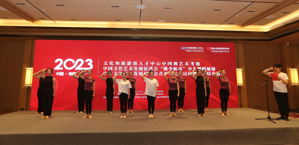 王敏充分地讲解了教材的编创背景,以及每一个非遗背后特有的故事,强调在努力学习民族民间舞同时,要去熟知每一个舞蹈背后特有的文化,以及所属于它本民族所特有的风格性动作。《中国文化艺术发展促进会中国民族民间舞考级综合教材》是首个男女班综合体教材,通过51个非遗舞蹈项目,结合中国特有的多民族、多文化、多流域的特点,将我国各民族民间舞细致呈现,通过教材的落地、学生学习来增强孩子们的民族自豪感,以期达到薪火相传的积极意义,与此同时该教材也通过了两项国家团体标准。为让社会艺术水平考级良性发展,中国文化艺术发展促进会青少年民族民间舞考级考生成绩颁发电子与纸质版双证,可在国家政务网查询,具有权威性。