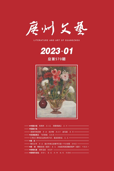 2023年第一期《广州文艺》扩版至208页,调整“中篇小说”为头条栏目。本期“中篇小说”刊发了苏二花的《失荆州》,在真实与想象之间探索人性的复杂;“短篇小说”以李浩的《踩着月色回家》作为头条,故事起承转合的结构与细腻的人物情感都颇为精彩;“后浪起珠江”刊发“95后”作者武庭英的首部中篇小说《飞行的痣》;“散文”栏目发表蒋蓝的《锋刃之书》、徐则臣《缺少年味儿的春节只是一个小长假》。